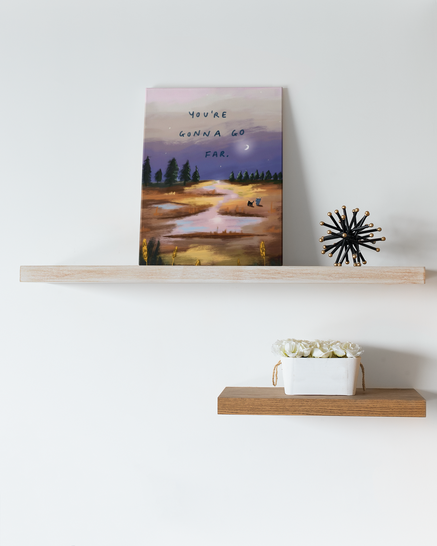 Each piece is hand-stretched over a sturdy wooden frame, ready to hang with no extra effort