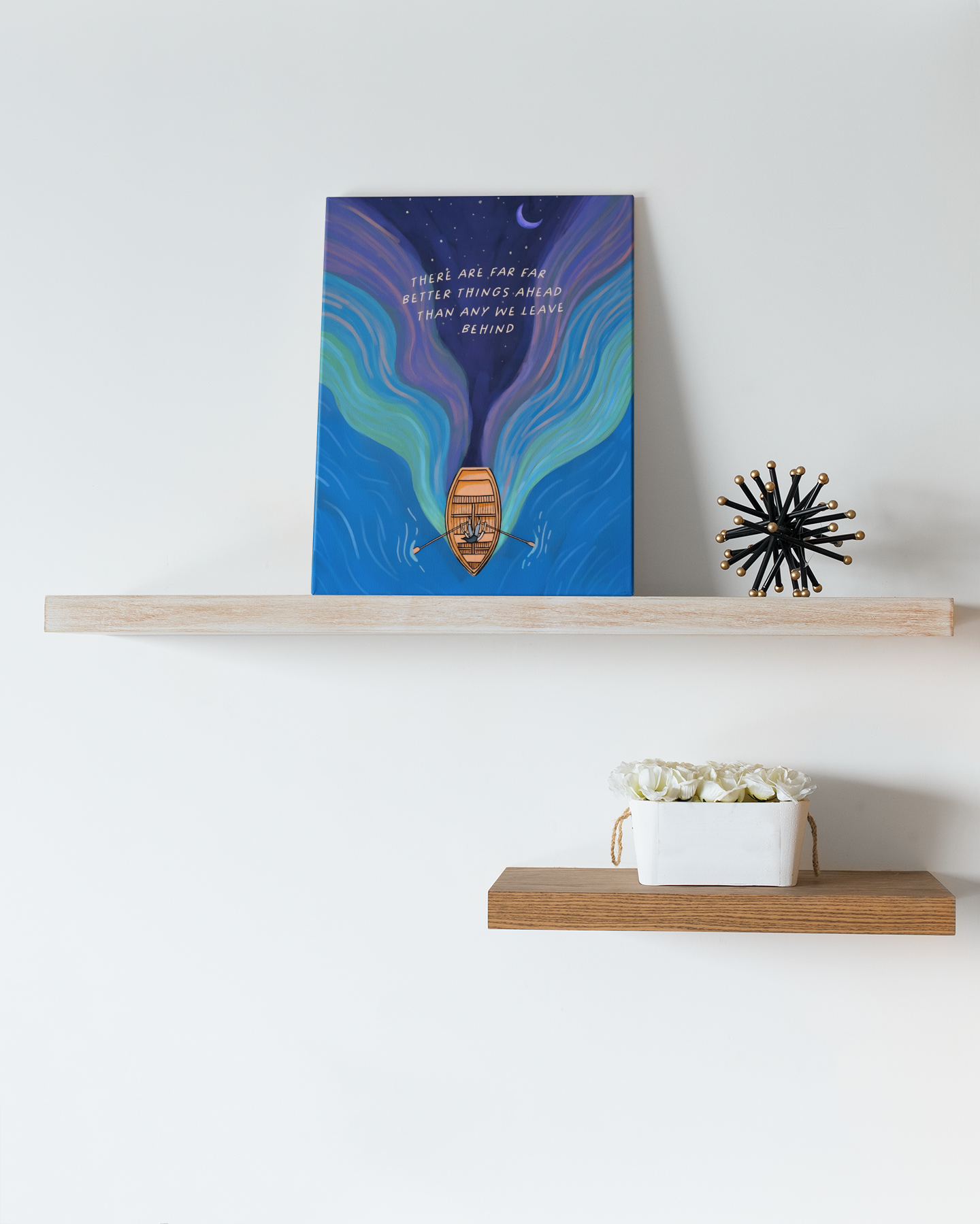 Hanging your canvas is quick and hassle-free. Each artwork comes with pre-installed hanging hardware and wall nails. Simply unbox, place the nails in your chosen spot, and hang your canvas. For frameless stretched canvas, just rest the top edge on the nails for a clean, modern look.