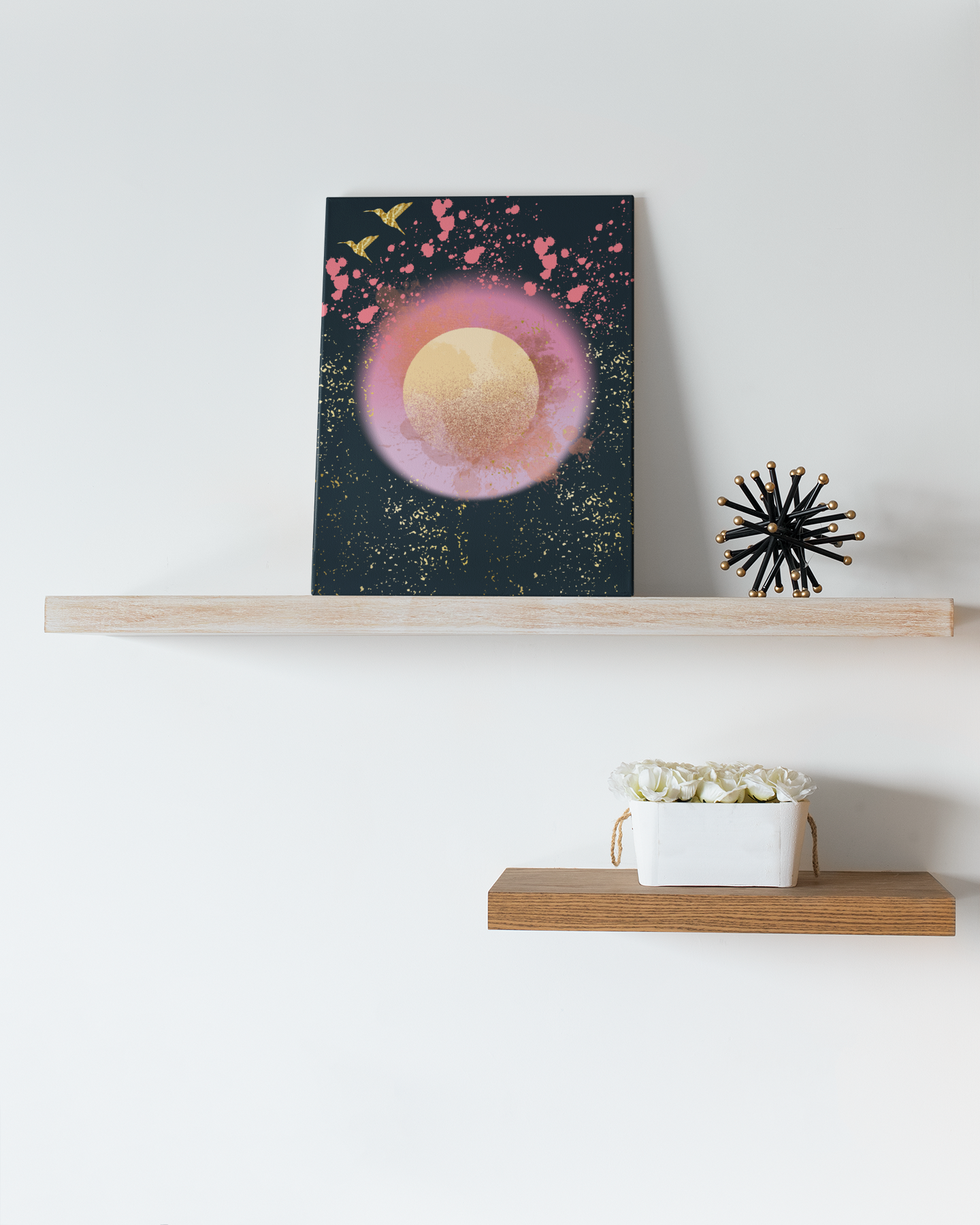 Hanging your canvas is quick and hassle-free. Each artwork comes with pre-installed hanging hardware and wall nails. Simply unbox, place the nails in your chosen spot, and hang your canvas. For frameless stretched canvas, just rest the top edge on the nails for a clean, modern look.