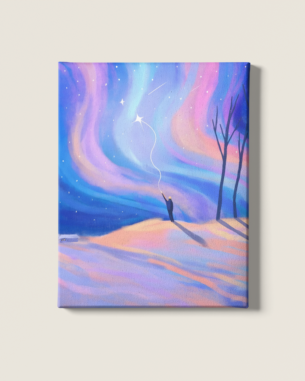 Each piece is hand-stretched over a sturdy wooden frame, ready to hang with no extra effort