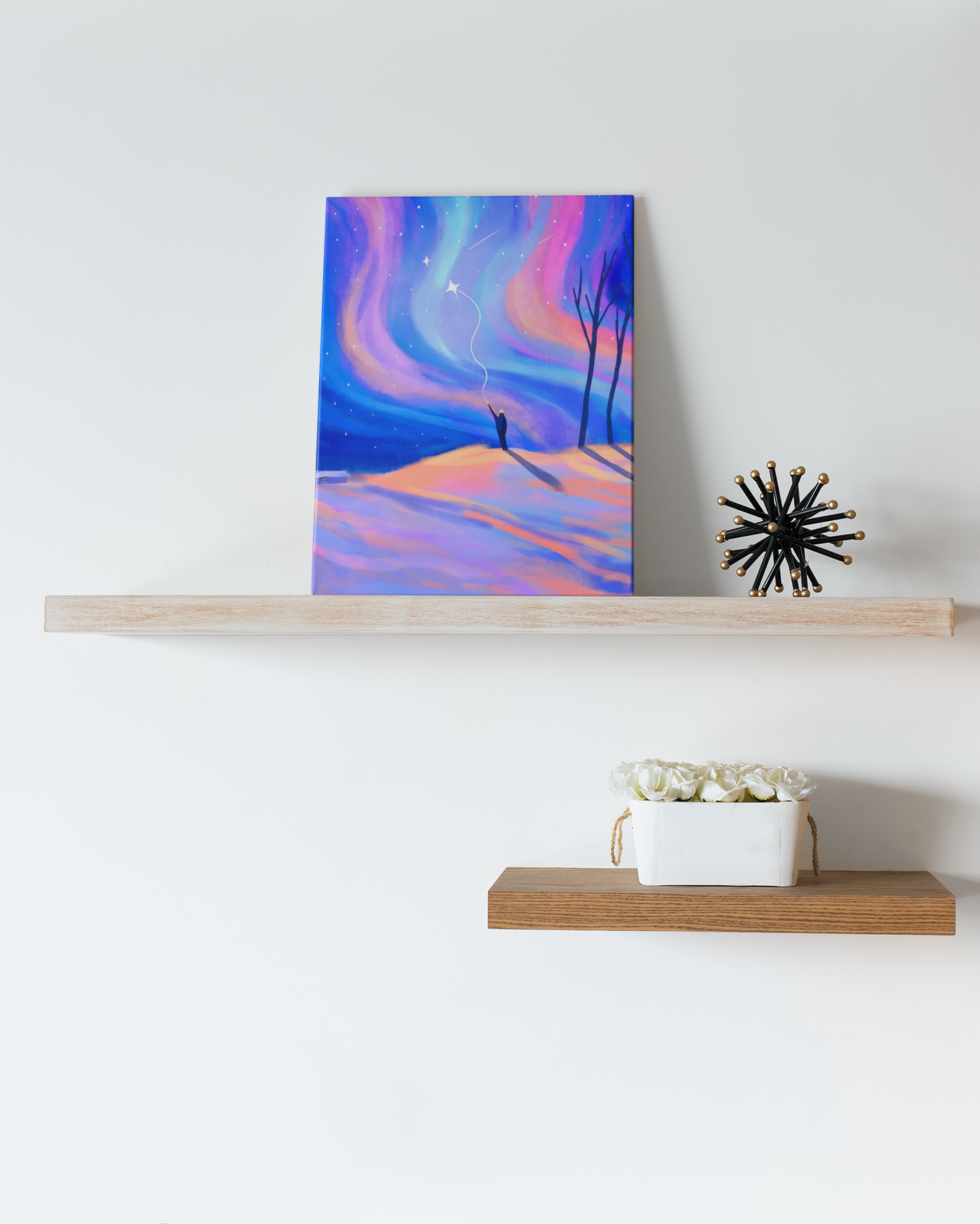 Hanging your canvas is quick and hassle-free. Each artwork comes with pre-installed hanging hardware and wall nails. Simply unbox, place the nails in your chosen spot, and hang your canvas. For frameless stretched canvas, just rest the top edge on the nails for a clean, modern look.