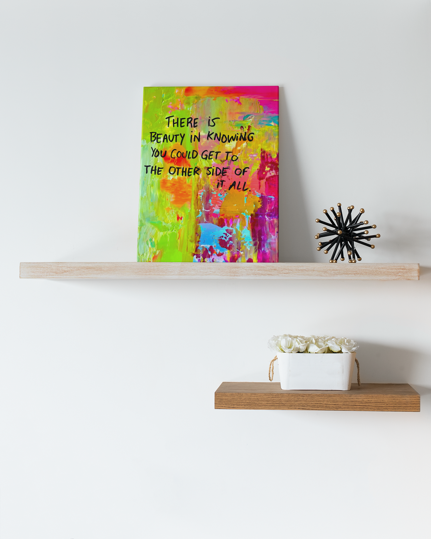 Hanging your canvas is quick and hassle-free. Each artwork comes with pre-installed hanging hardware and wall nails. Simply unbox, place the nails in your chosen spot, and hang your canvas. For frameless stretched canvas, just rest the top edge on the nails for a clean, modern look.