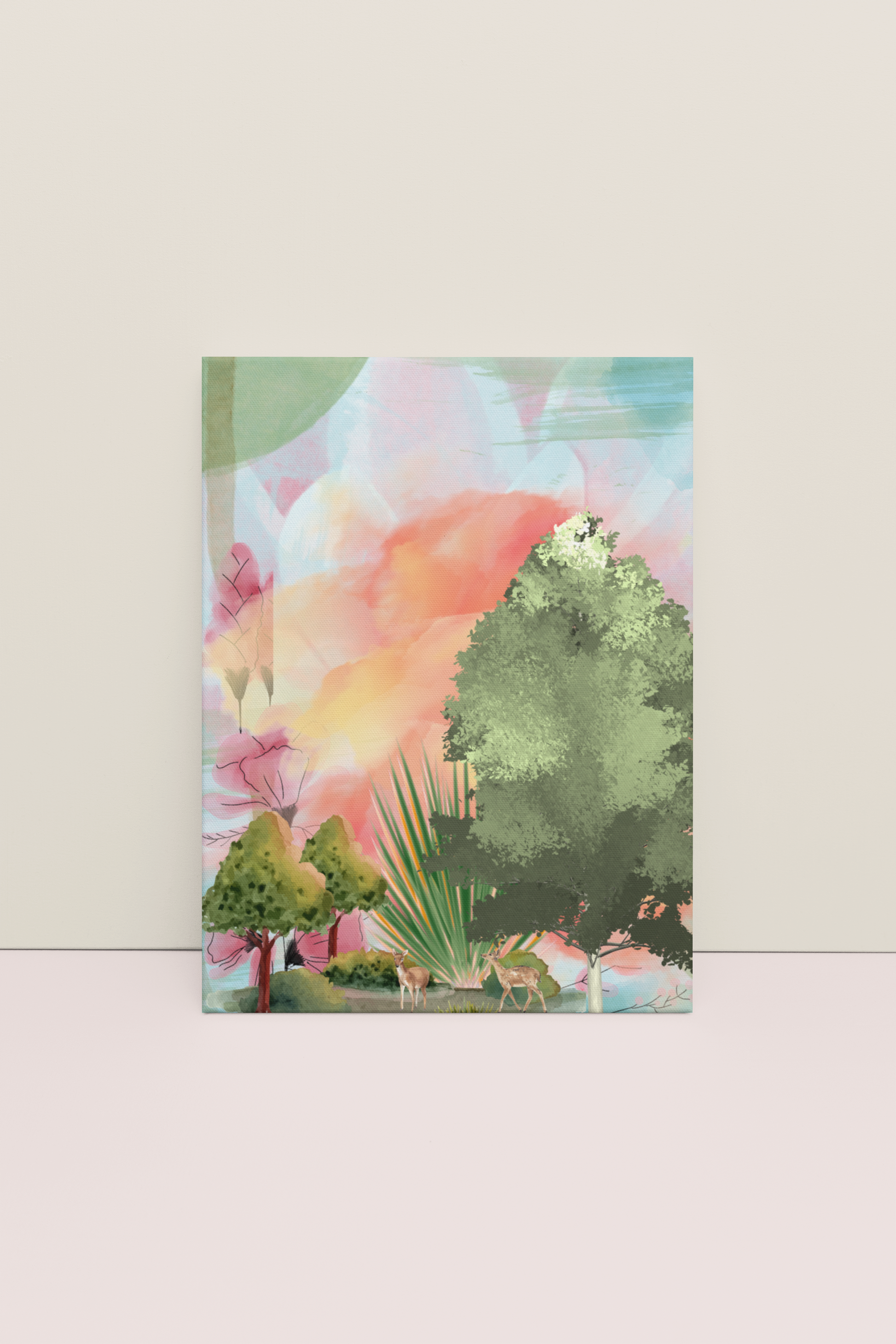 Each piece is hand-stretched over a sturdy wooden frame, ready to hang with no extra effort